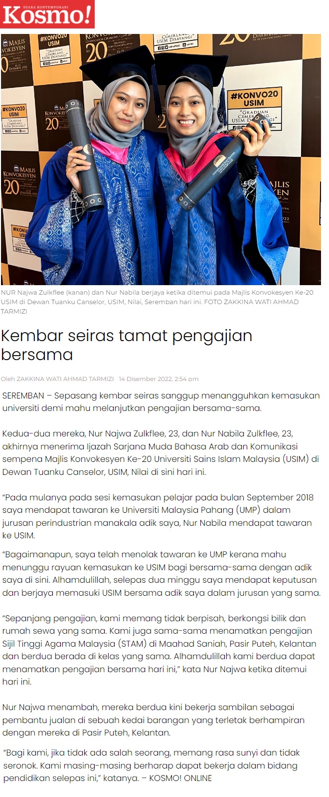 Kembar seiras tamat pengajian bersama