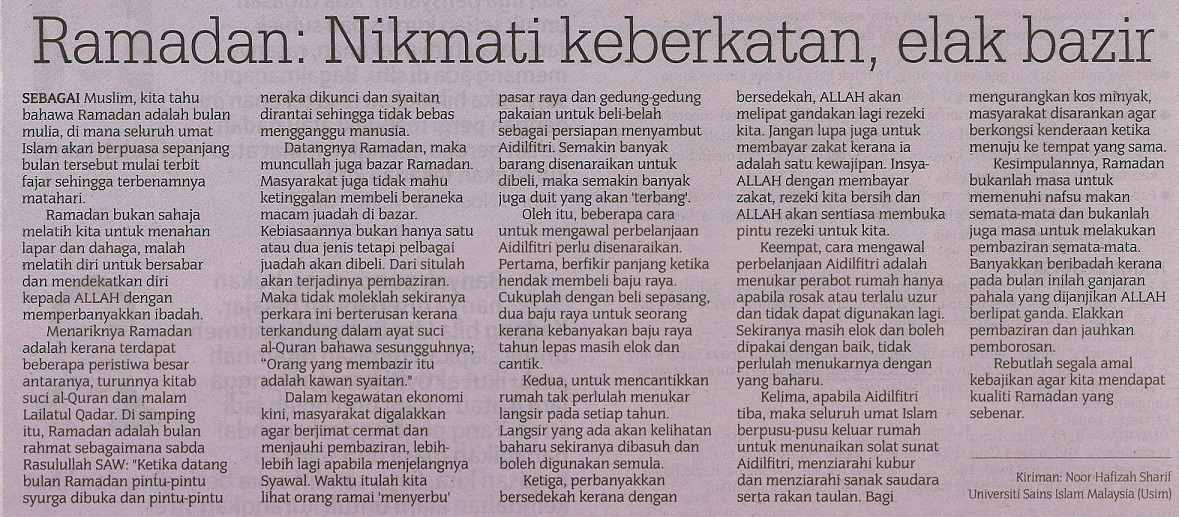 Ramadan Nikmati Keberkatan, Elak Bazir