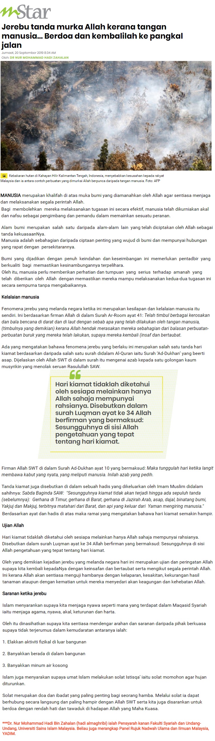 Jerebu Tanda Murka Allah Kerana Tangan Manusia
