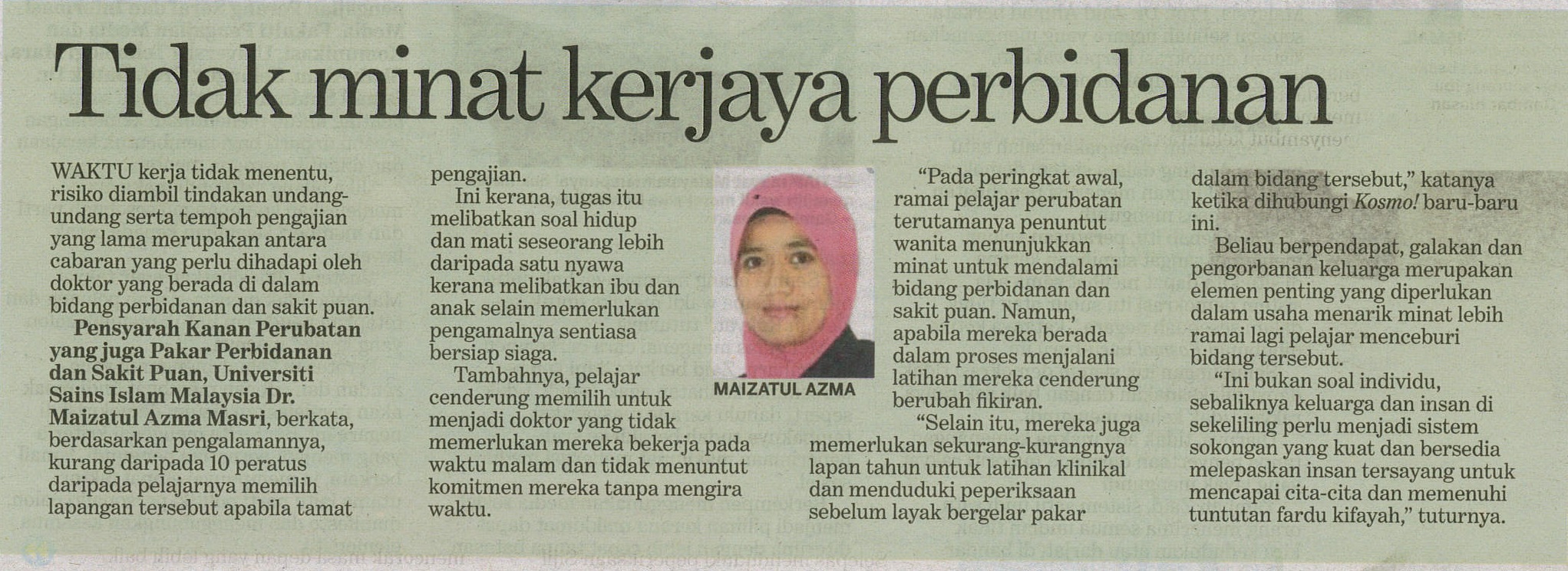 Tidak Minat Kerjaya Perbidanan