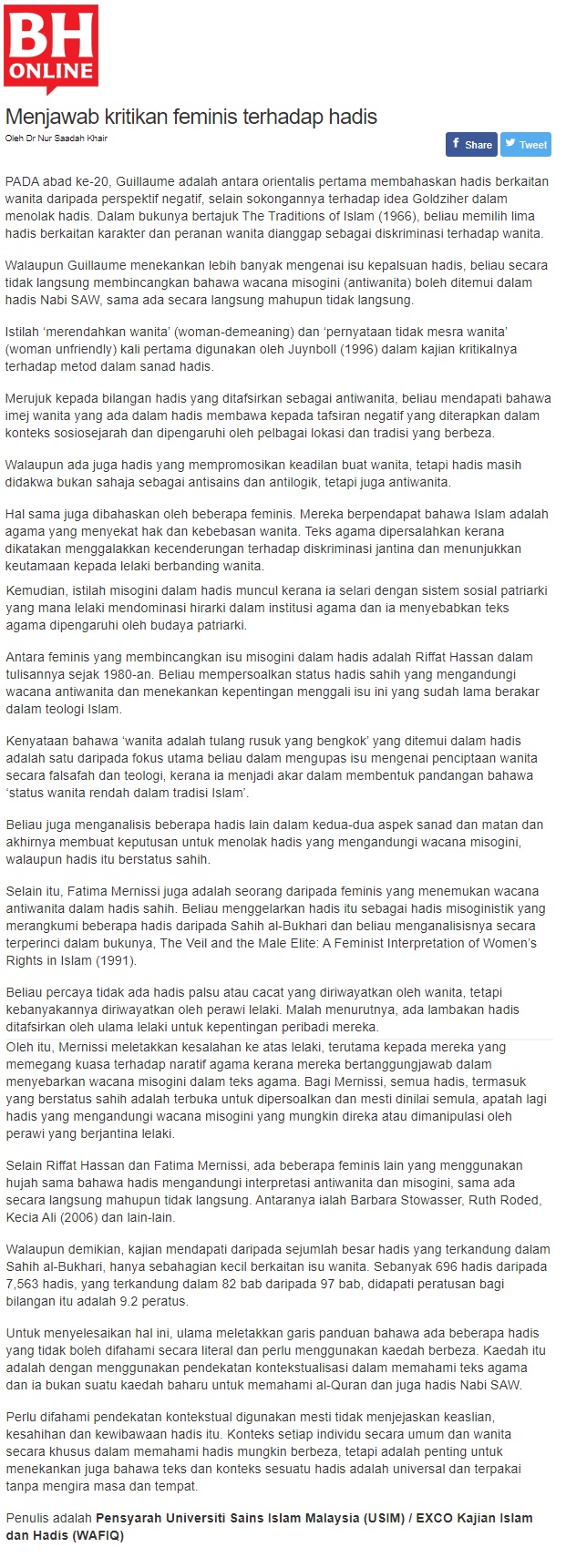Menjawab Kritikan Feminis Terhadap Hadis