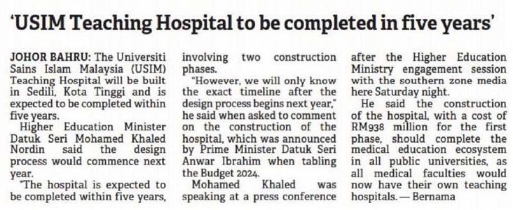 USIM teaching hospital to be completed in five years