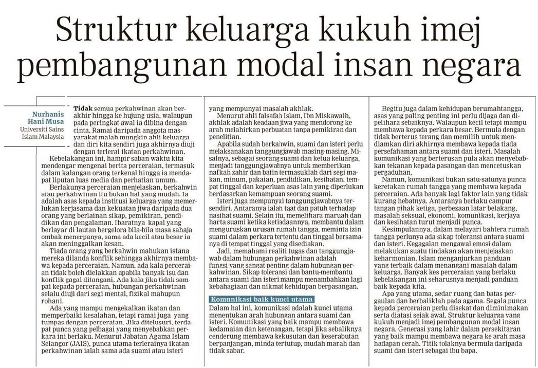 Struktur keluarga kukuh imej pembangunan modal insan negara