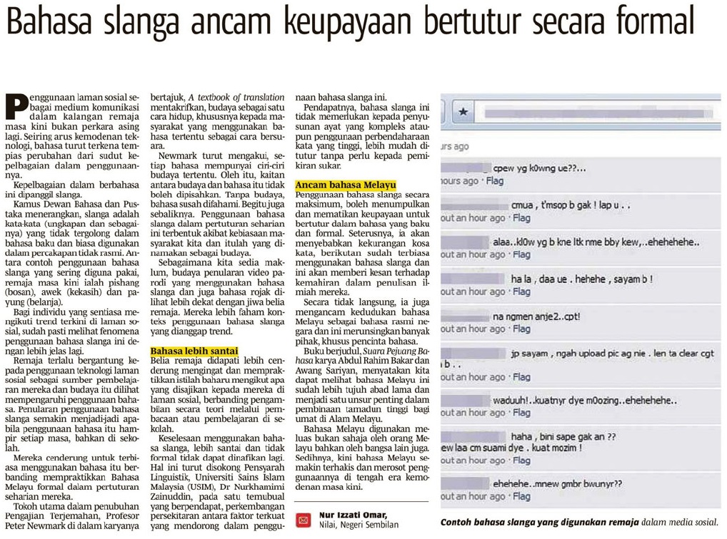 Bahasa Slanga Ancam Keupayaan Bertutur Secara Formal