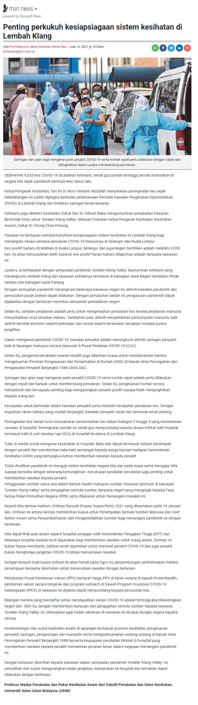 Penting Perkukuh Kesiapsiagaan Sistem Kesihatan Di Lembah Klang