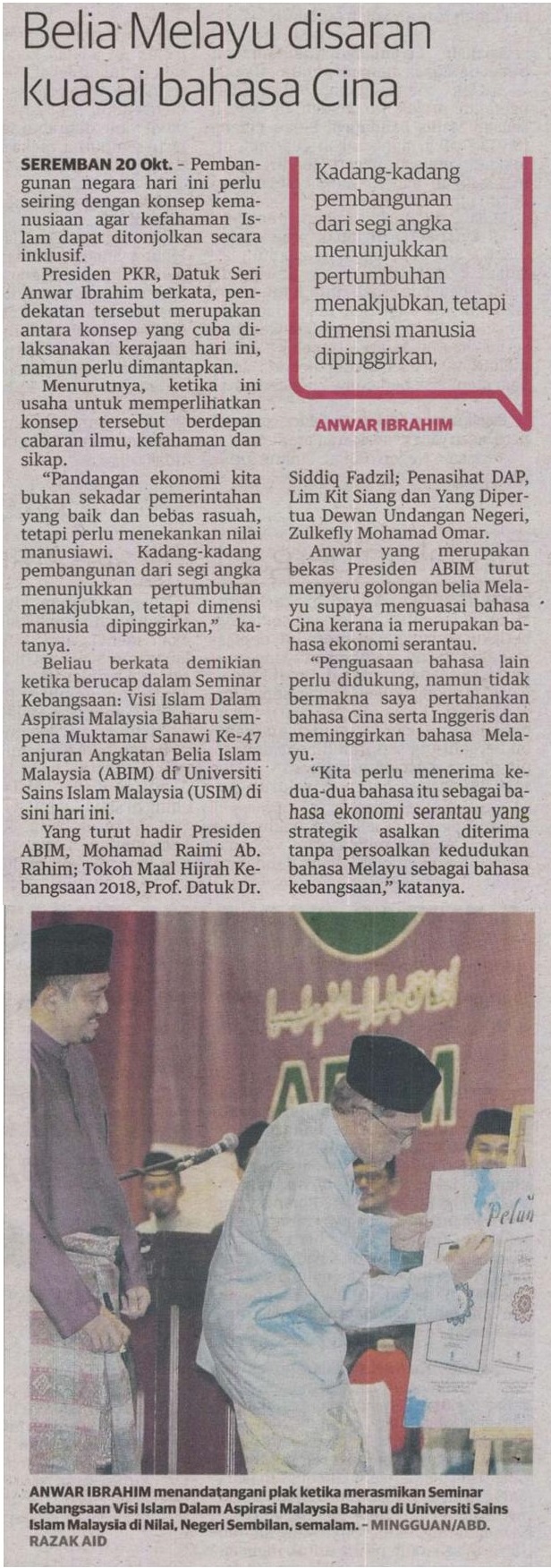MINGGUAN MALAYSIA 21 OKTOBER 2018 MS 8 BELIA MELAYU DISARAN KUASAI BAHASA CINA.jpg