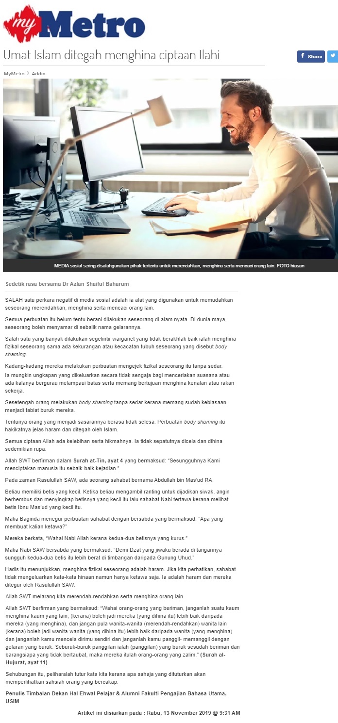Umat Islam Ditegah Menghina Ciptaan Ilahi
