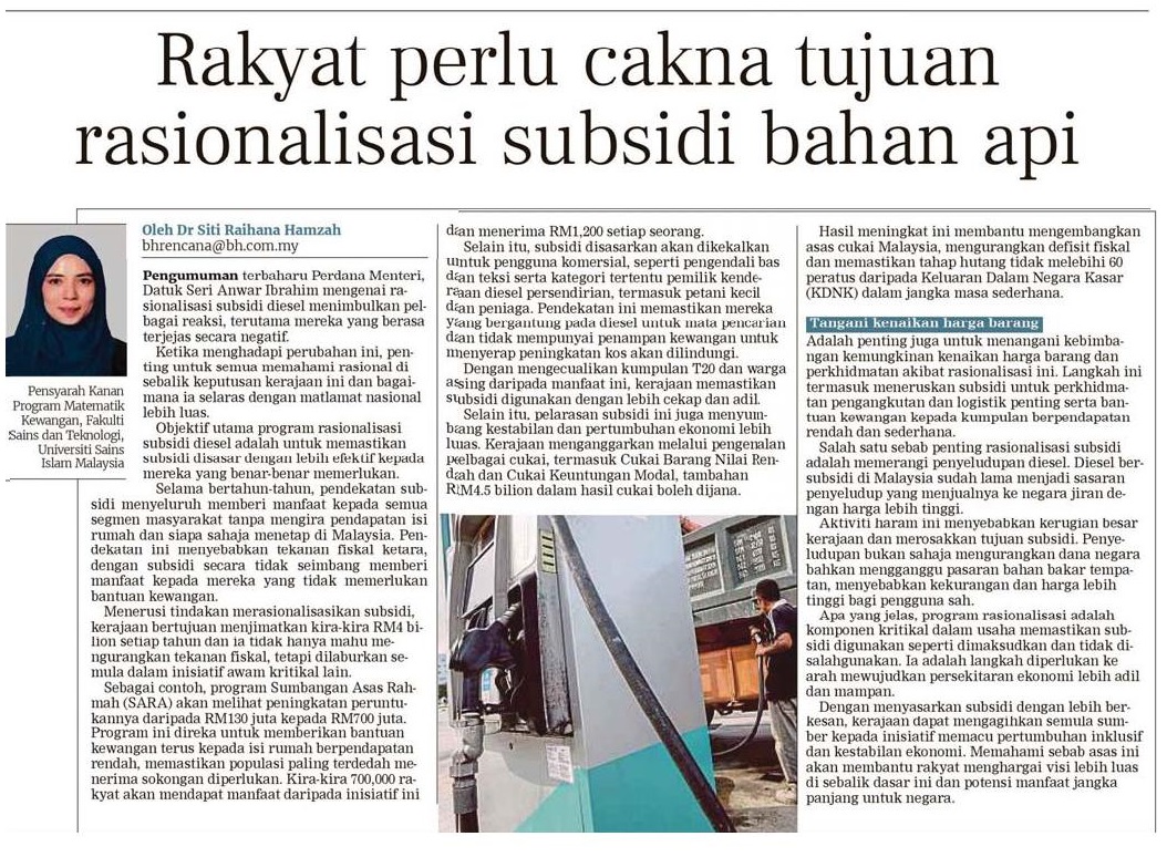 Rakyat perlu cakna tujuan rasionalisasi subsidi bahan api