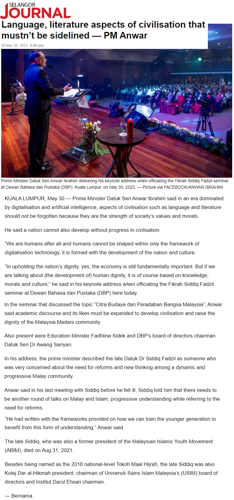 Languange, literature aspects of civilisation that musn't be sidelined-PM Anwar