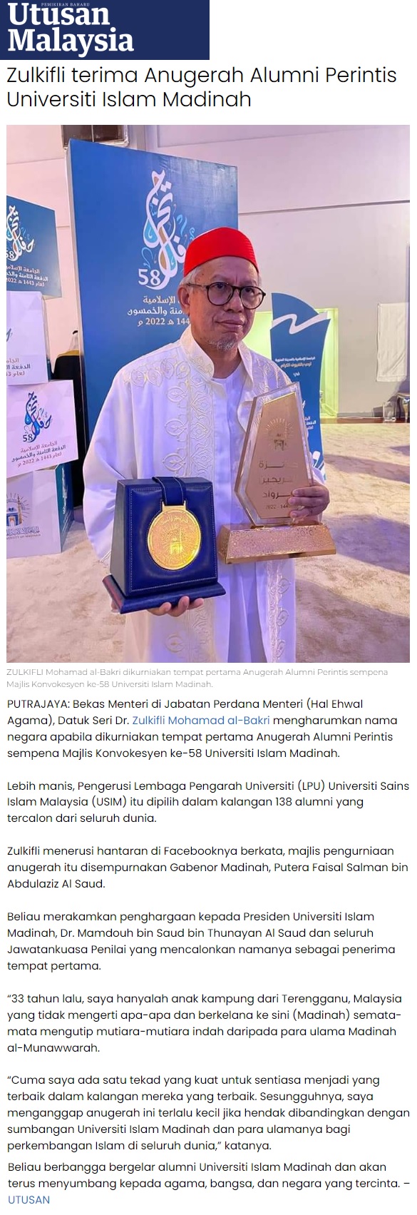 Zulkifli Terima Anugerah Alumni Perintis Universiti Islam Madinah
