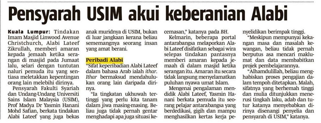 Pensyarah Usim Akui Keberanian Alabi