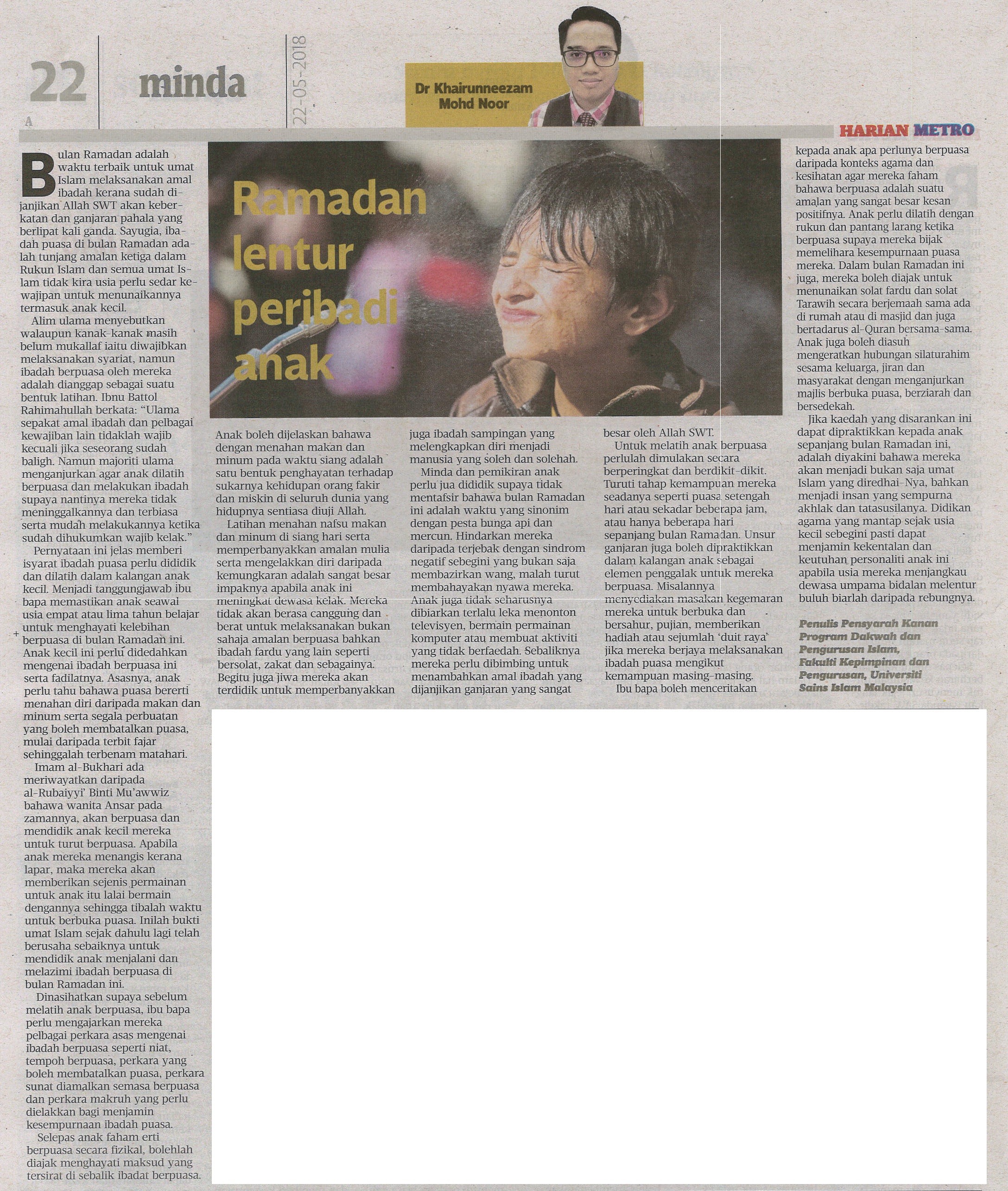 HARIAN METRO 22 MEI 2018 MS 22 RAMADAN LENTUR PERIBADI ANAK.jpg