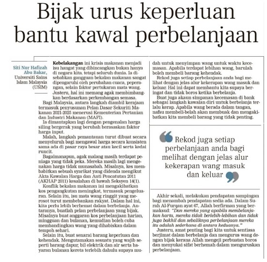 Bijak Urus Keperluan Bantu Kawal Perbelanjaan