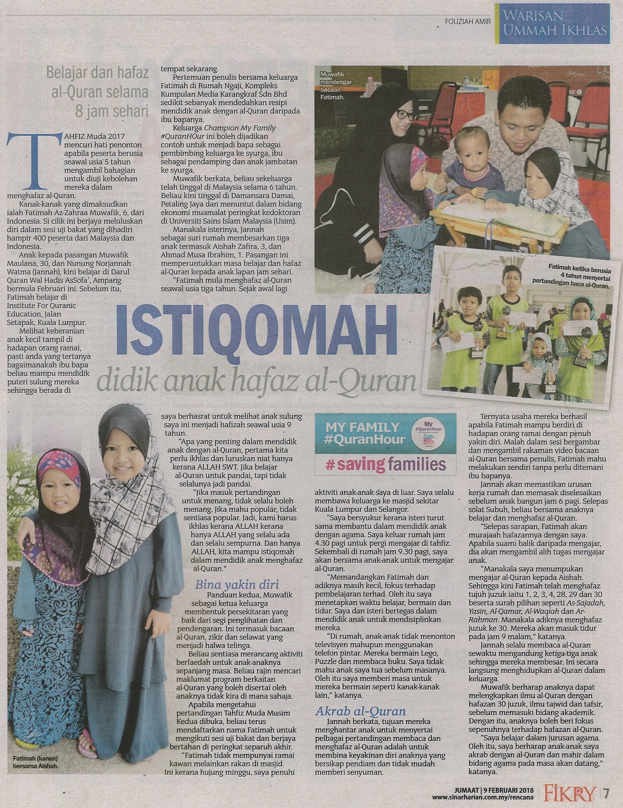 SINAR HARIAN - ISTIQOMAH DIDIK ANAK HAFAZ AL-QURAN, 9 FEBRUARI 2018, MS 7 (FIKRY).jpg