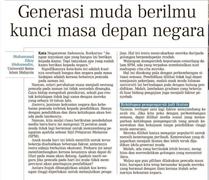 Generasi muda berilmu kunci masa depan negara