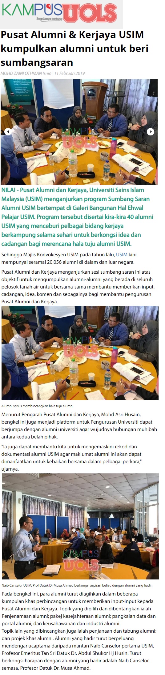 Pusat Alumni & Kerjaya USIM Kumpulkan Alumni Untuk Beri Sumbangsaran