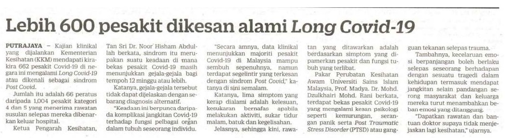 Lebih 600 Pesakit Dikesan Alami Long Covid-19