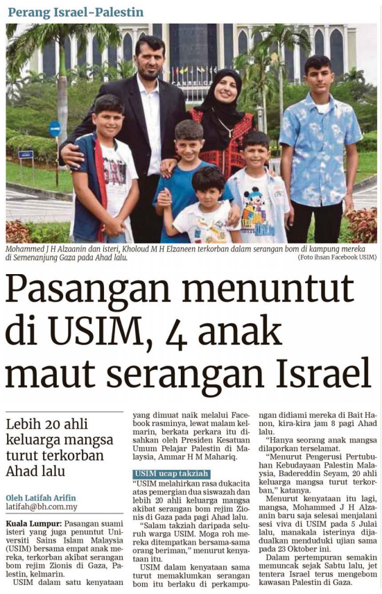 Pasangan menuntut di USIM, 4 anak maut serangan Israel