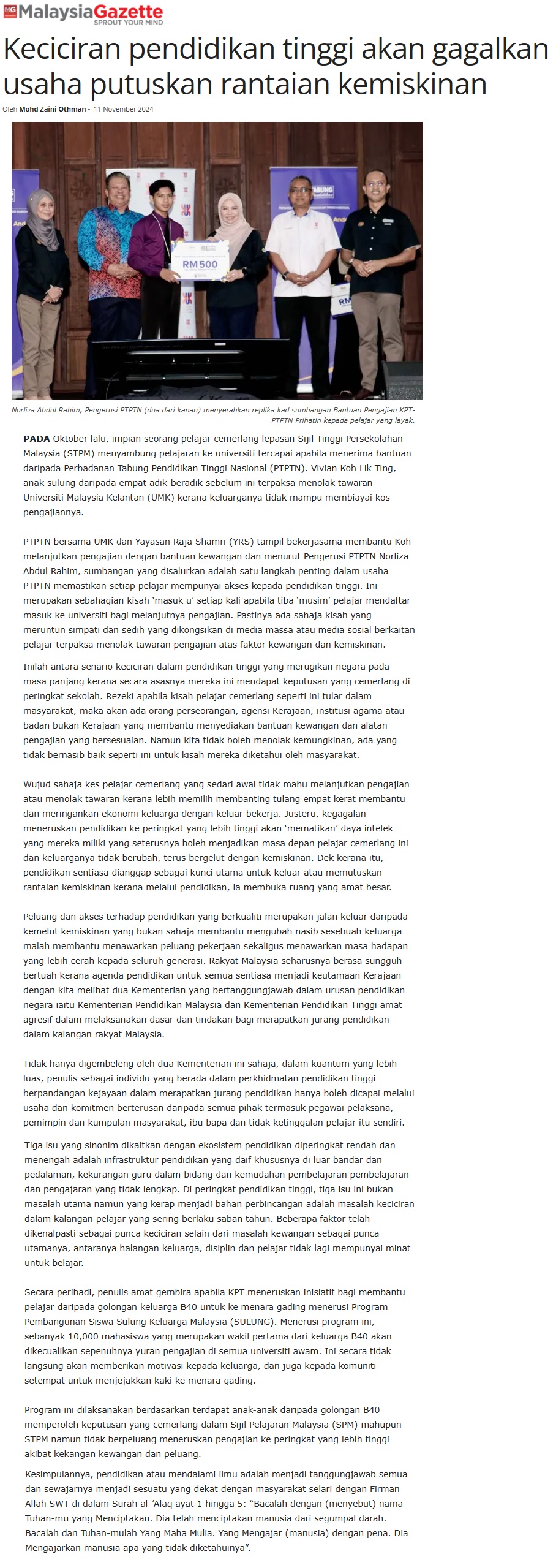 KECICIRAN PENDIDIKAN TINGGI AKAN GAGALKAN USAHA PUTUSKAN RANTAIAN KEMISKINAN