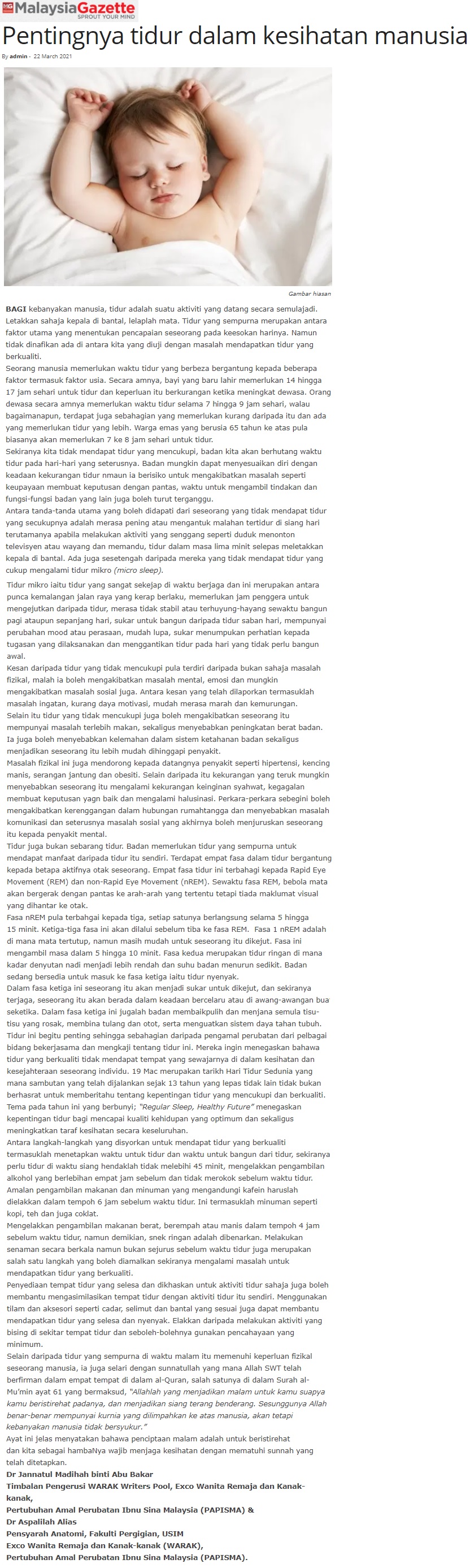 Pentingnya Tidur Dalam Kesihatan Manusia