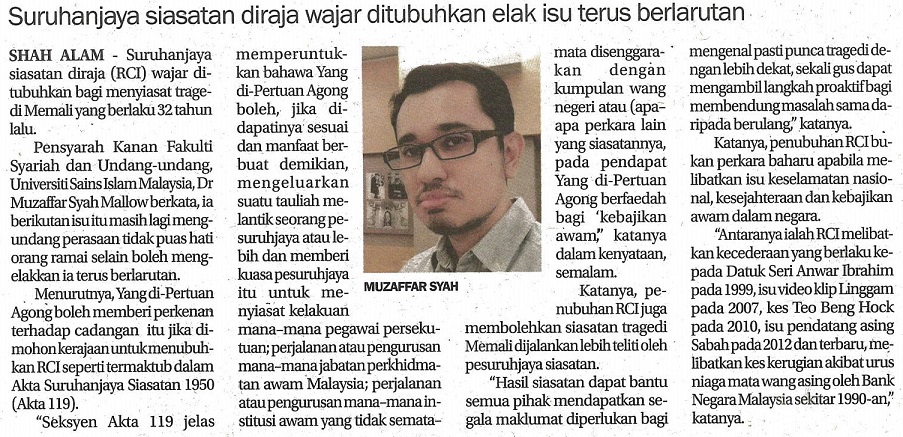 Suruhanjaya Siasatan Diraja Wajar Ditubuhkan Elak Isu Terus Berlarutan