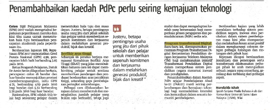 - BERITA HARIAN, 20 MAC 2018, MS 67, PENAMBAHBAIKAN KAEDAH PDPC PERLU SEIRING KEMAJUAN TEKNOLOGI.jpg