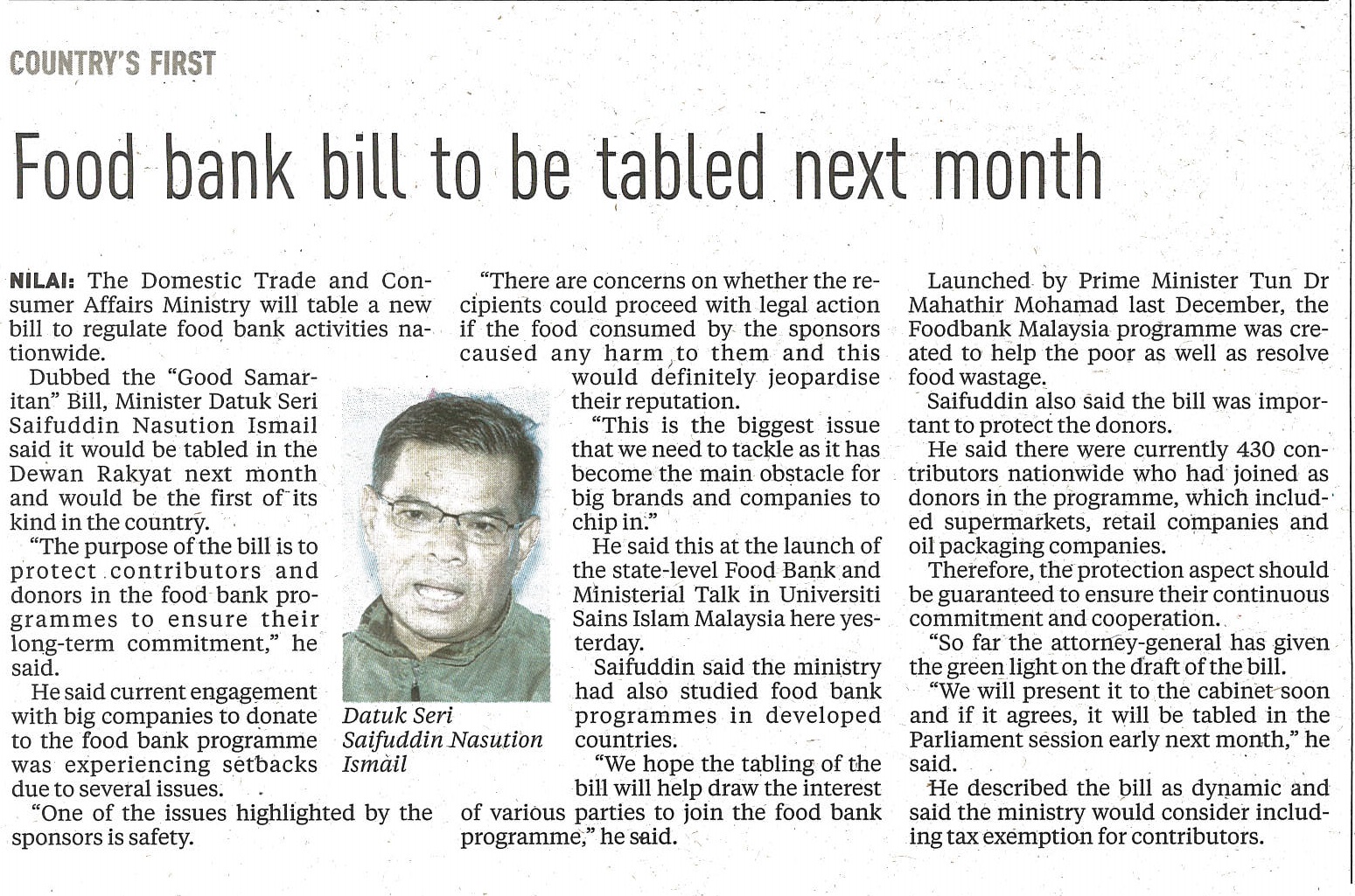 Foodbank Bill To Be Tabled Next Month