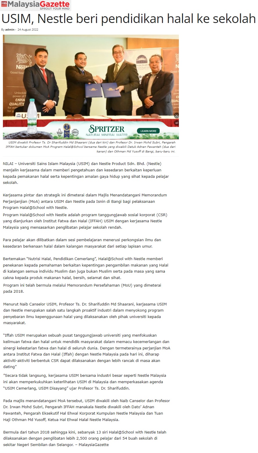 - MALAYSIA GAZETTE 24 OGOS 2022 USIM, NESTLE BERI PENDIDIKAN HALAL KE SEKOLAH.jpg