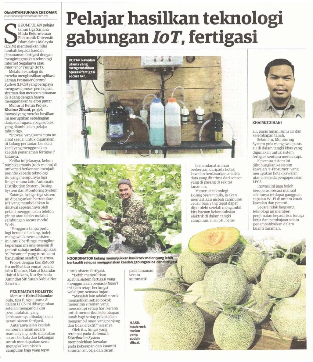 Pelajar Hasilkan Teknologi Gabungan IOT, Fertigasi