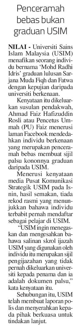 Penceramah Bebas Bukan Graduan USIM