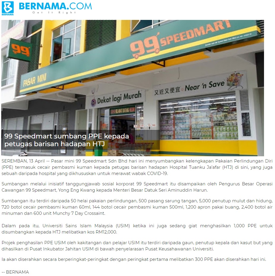 99 Speedmart Sumbang PPE Kepada Petugas Barisan Hadapan HTJ