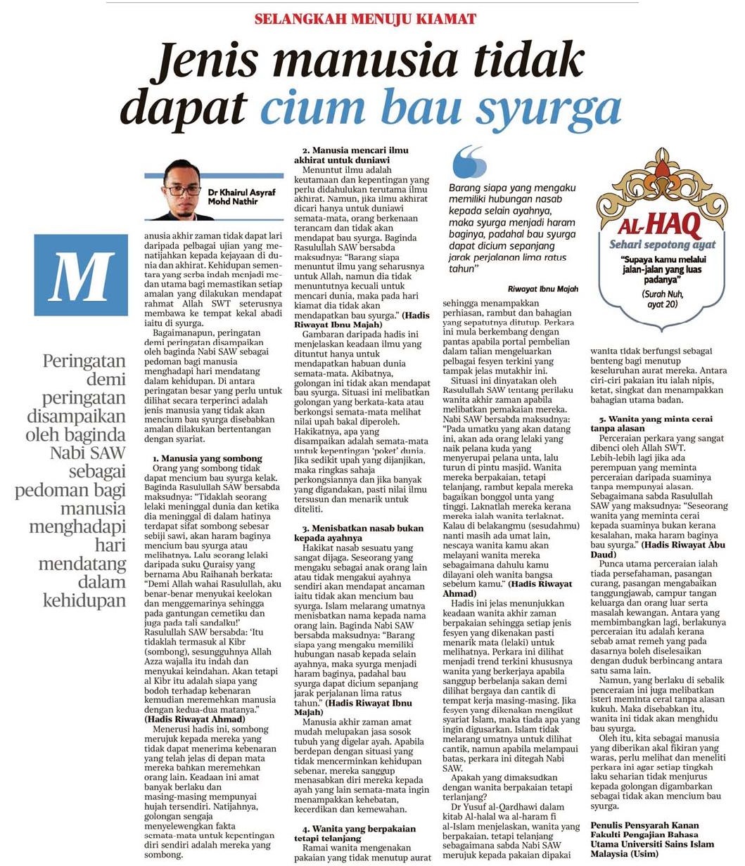 Jenis Manusia Tidak Dapat Cium Bau Syurga