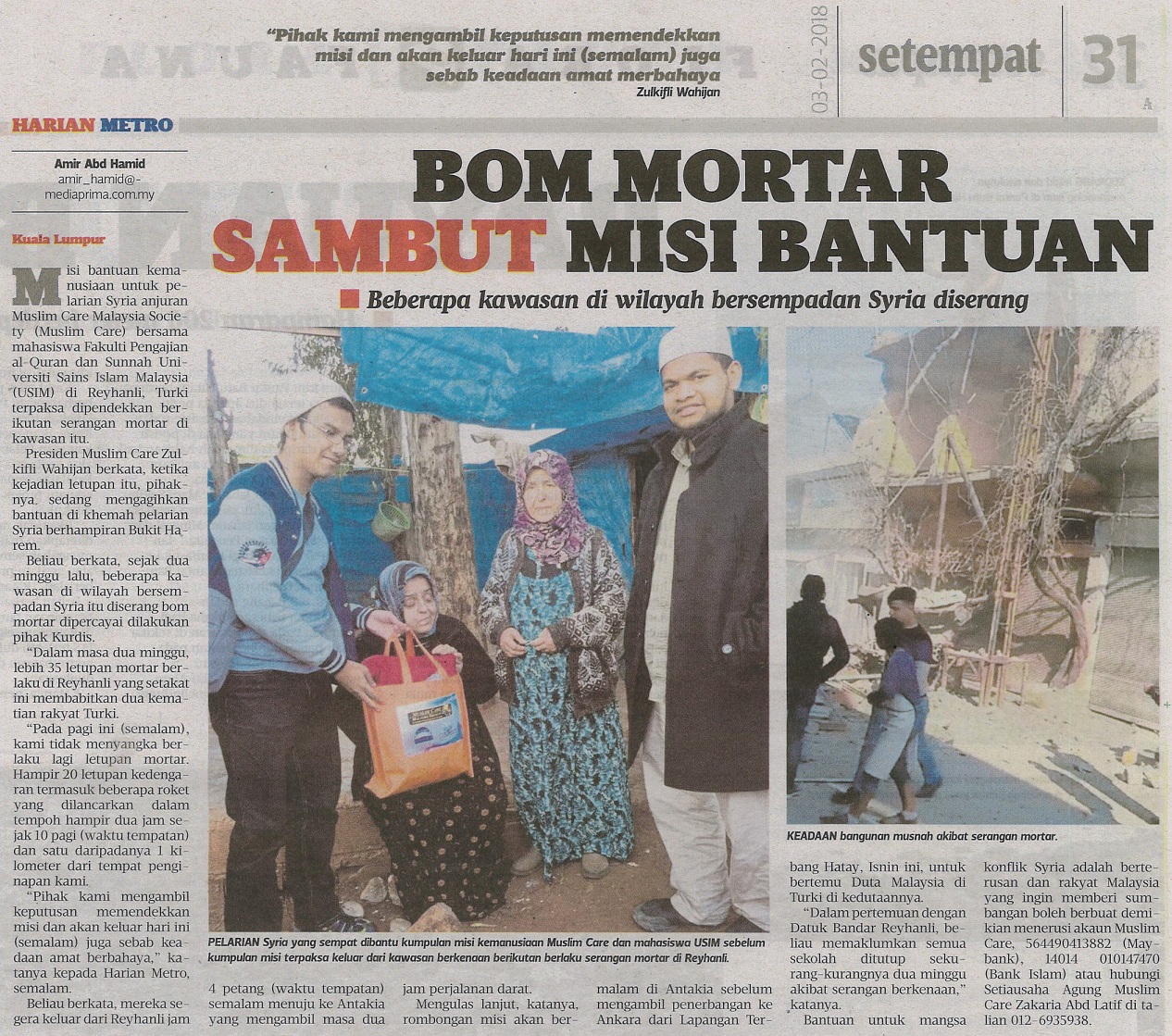 HARIAN METRO - BOM MORTAR SAMBUT MISI BANTUAN, 3 FEBRUARI 2018, MS 31.jpg