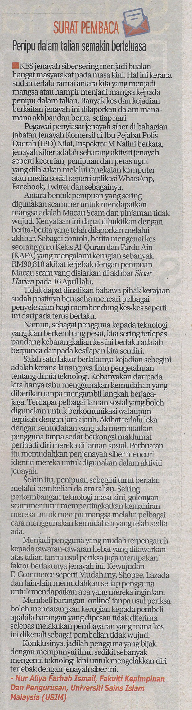 NUR ALIYA FARHAH ISMAIL (PELAJAR USIM)