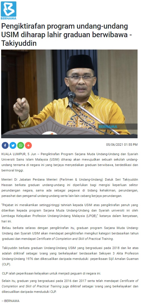 Pengiktirafan Program Undang-Undang USIM Diharap Lahir Graduan Berwibawa