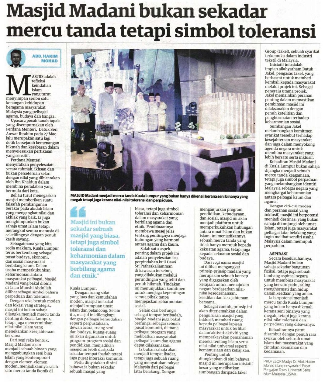 Masjid Madani bukan sekadar mercu tanda tetapi simbol toleransi
