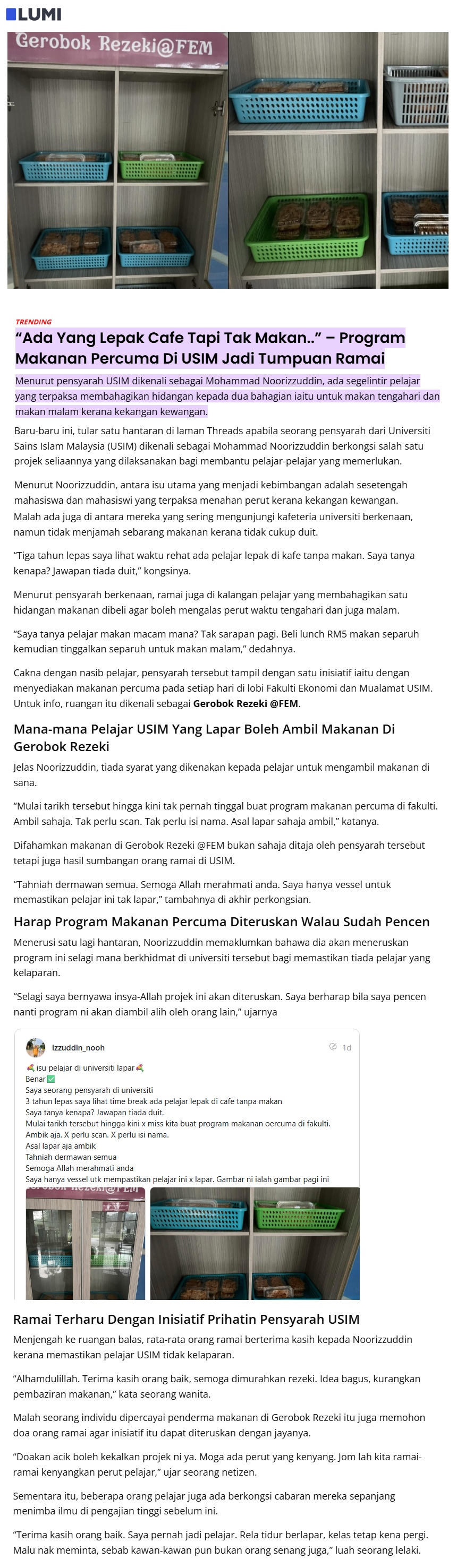 PROGRAM MAKANAN PERCUMA DI USIM JADI TUMPUAN RAMAI