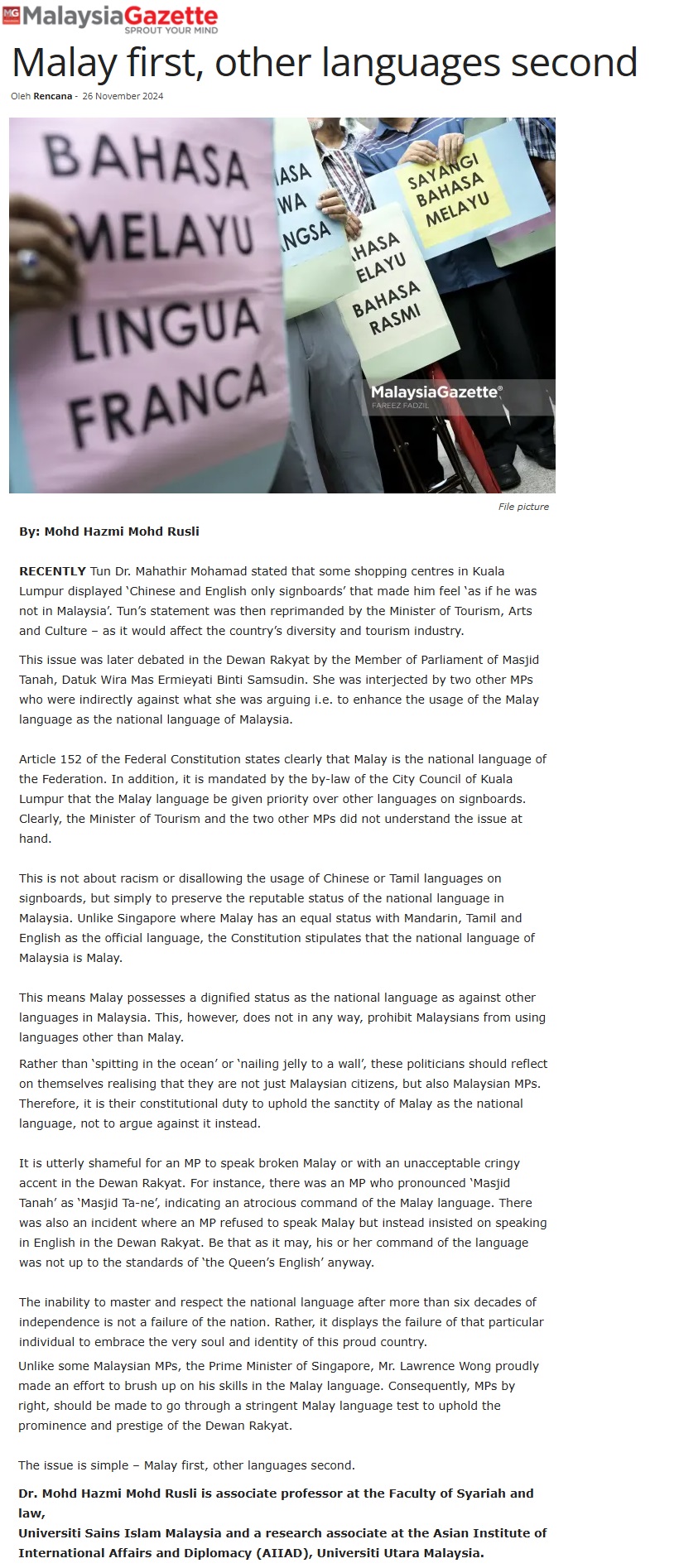MALAY FIRST, OTHER LANGUAGES SECOND