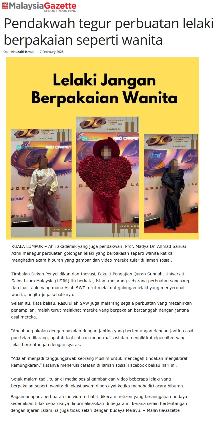 Pendakwah tegur perbuatan lelaki berpakaian seperti wanita