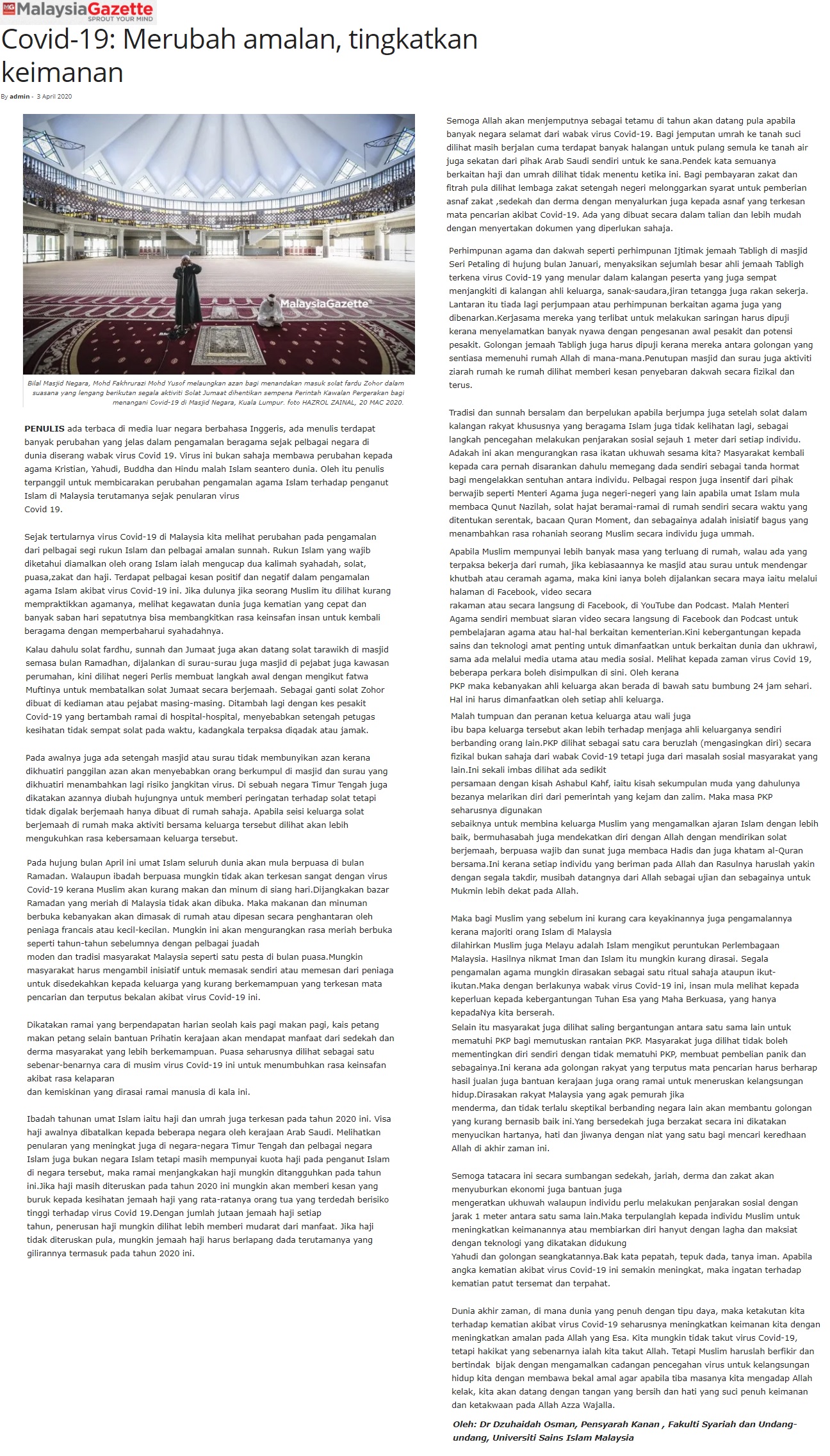 Merubah Amalan Tingkatkan Keimanan (Malaysia Gazette)