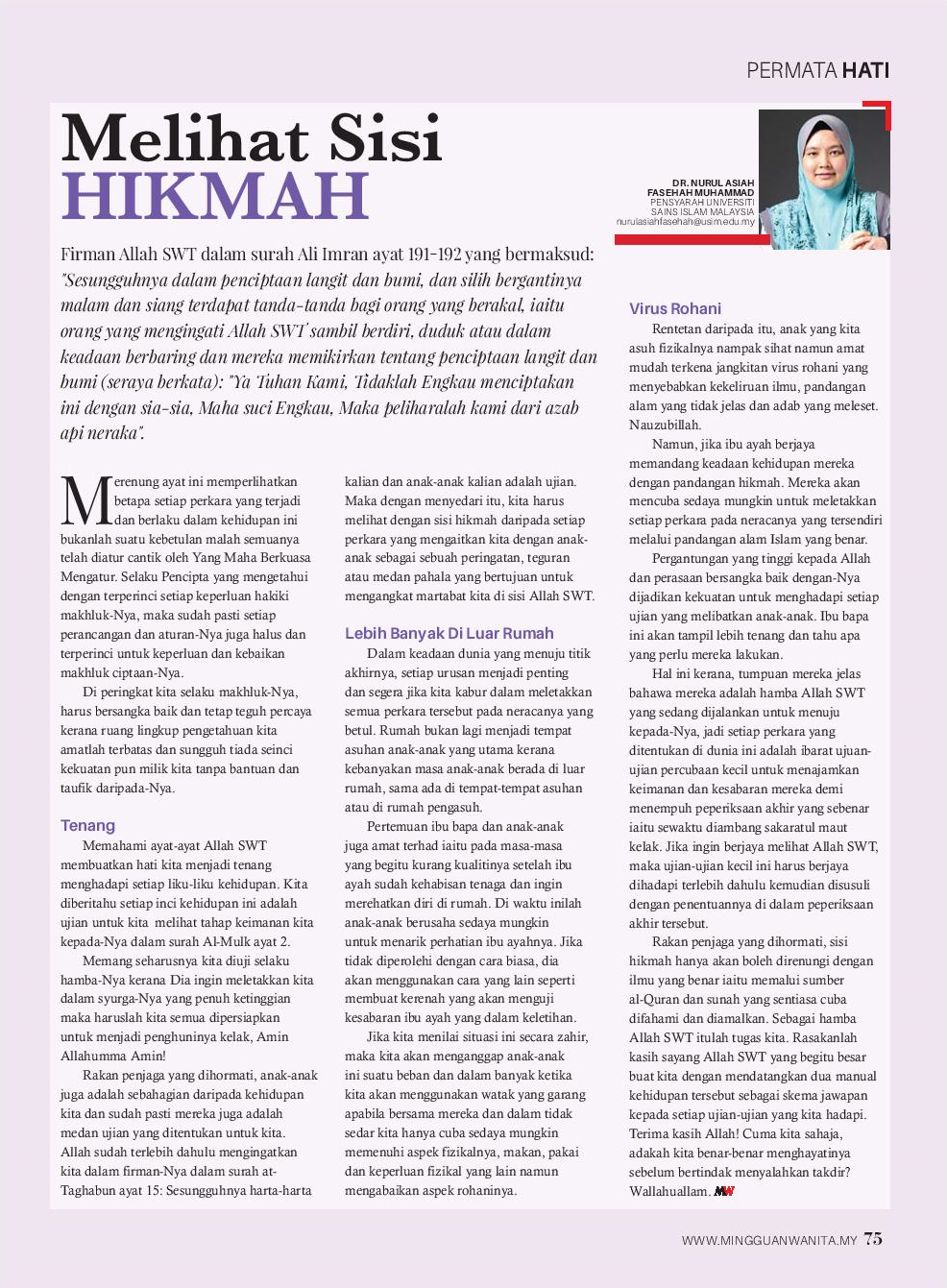 Mingguan Wanita, Dr. Nurul Asiah Fasehah Muhammad