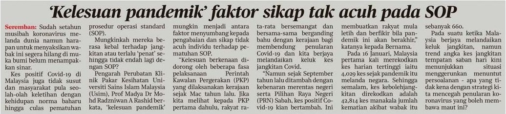 Kelesuan Pandemik Faktor Sikap Tidak Acuh Dengan SOP