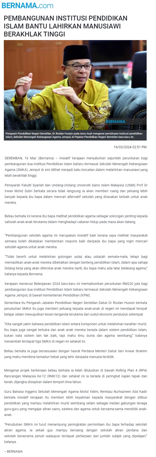 Pembangunan institusi pendidikan islam bantu lahirkan manusiawi berakhlak tinggi