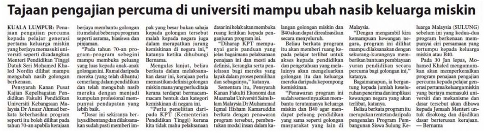 Tajaan pengajian percuma di universiti mampu ubah nasib keluarga miskin