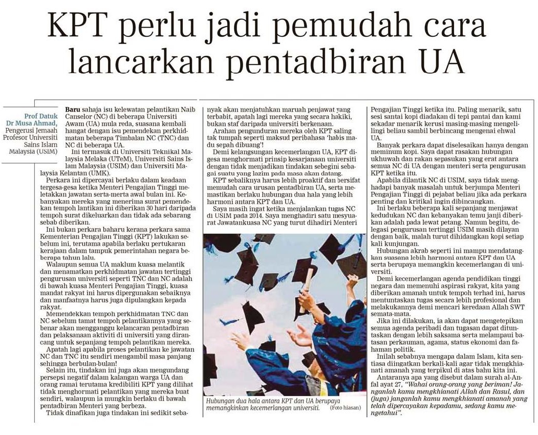KPT Perlu Jadi Pemudah Cara Lancarkan Pentadbiran UA