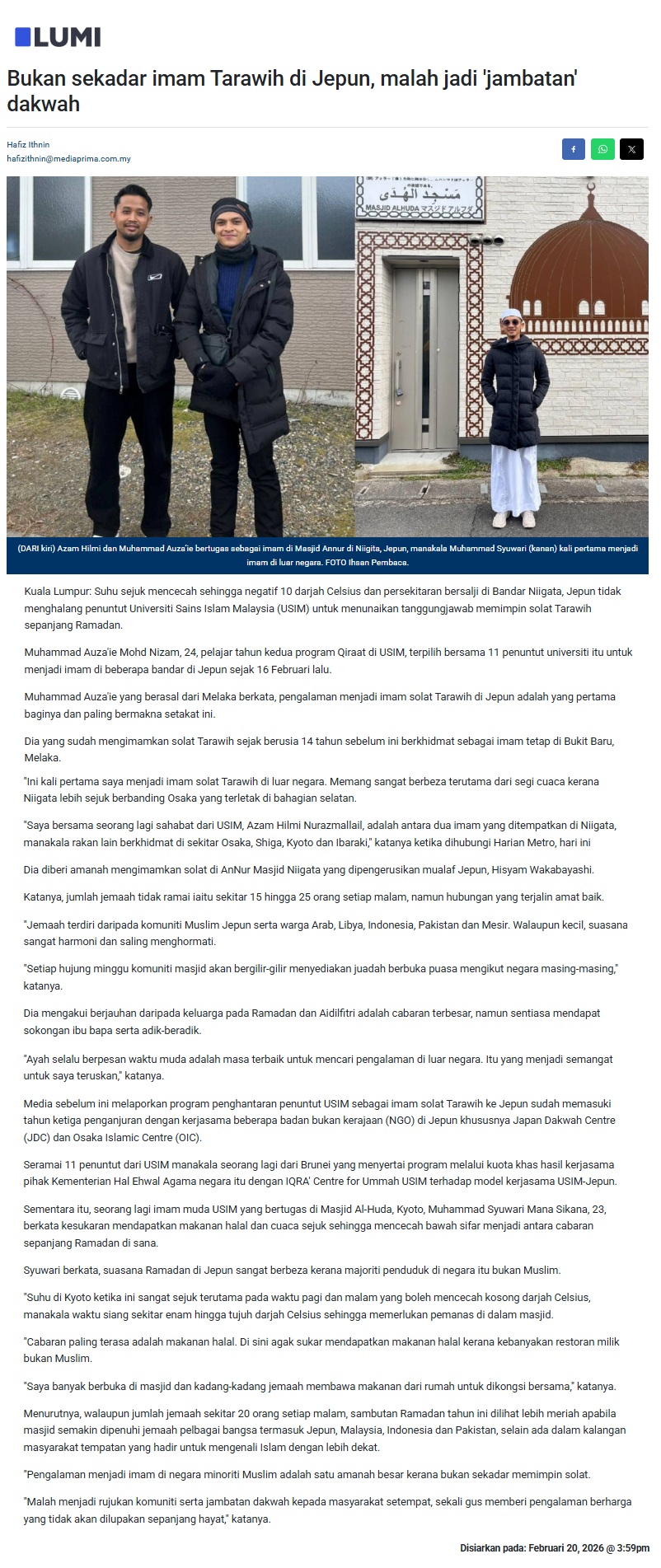 BUKAN SEKADAR IMAM TERAWIH DI JEPUN, MALAH JADI JAMBATAN DAKWAH