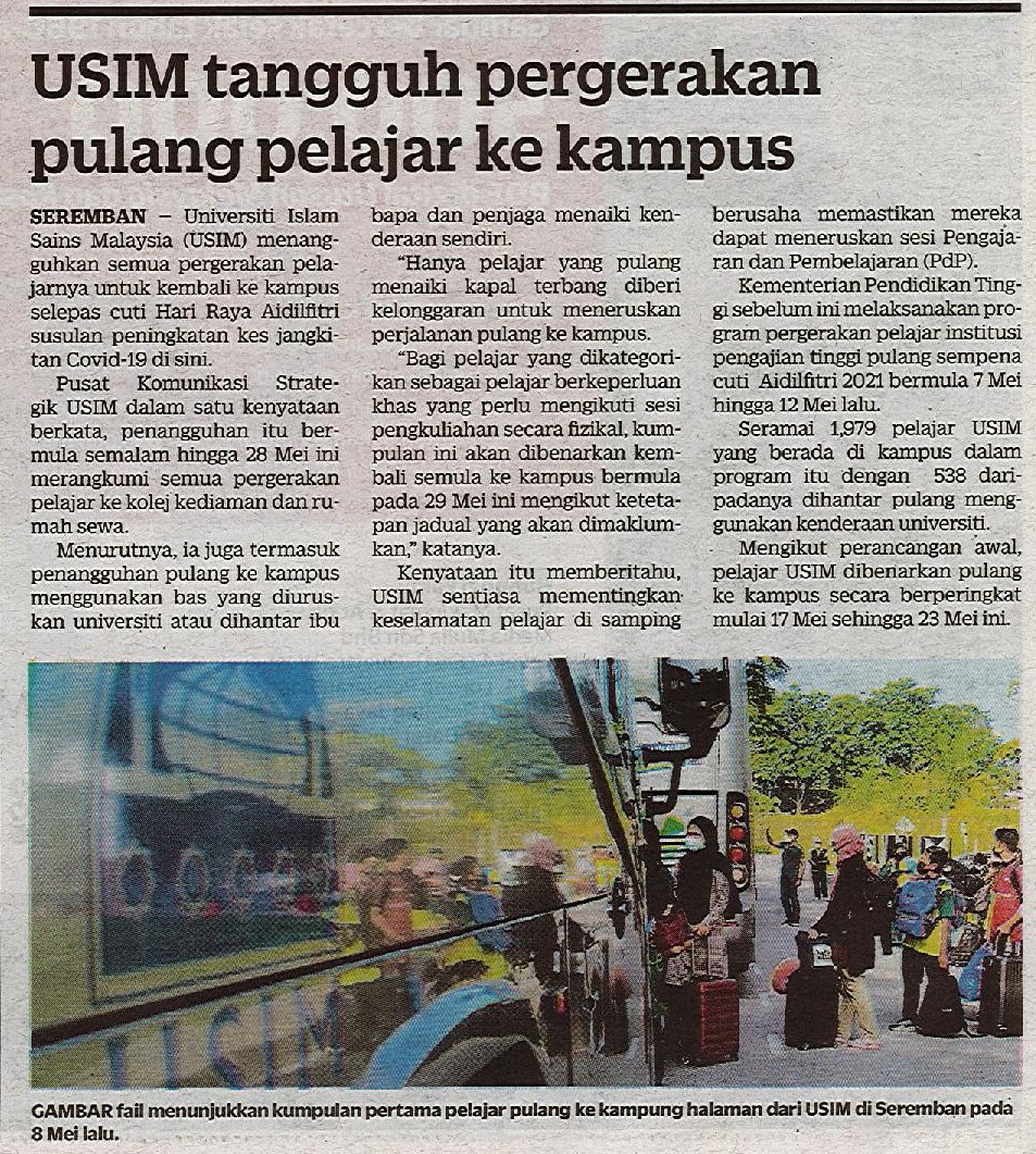USIM Tangguh Pergerakan Pulang Pelajar Ke Kampus
