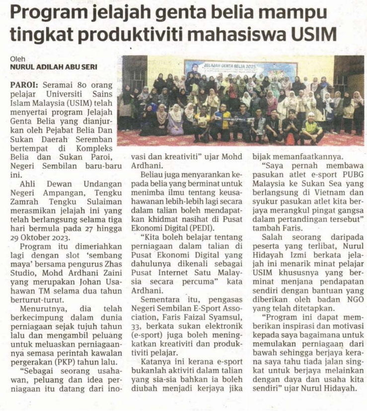 Program jelajah genta belia mampu tingkat produktiviti mahasiswa USIM