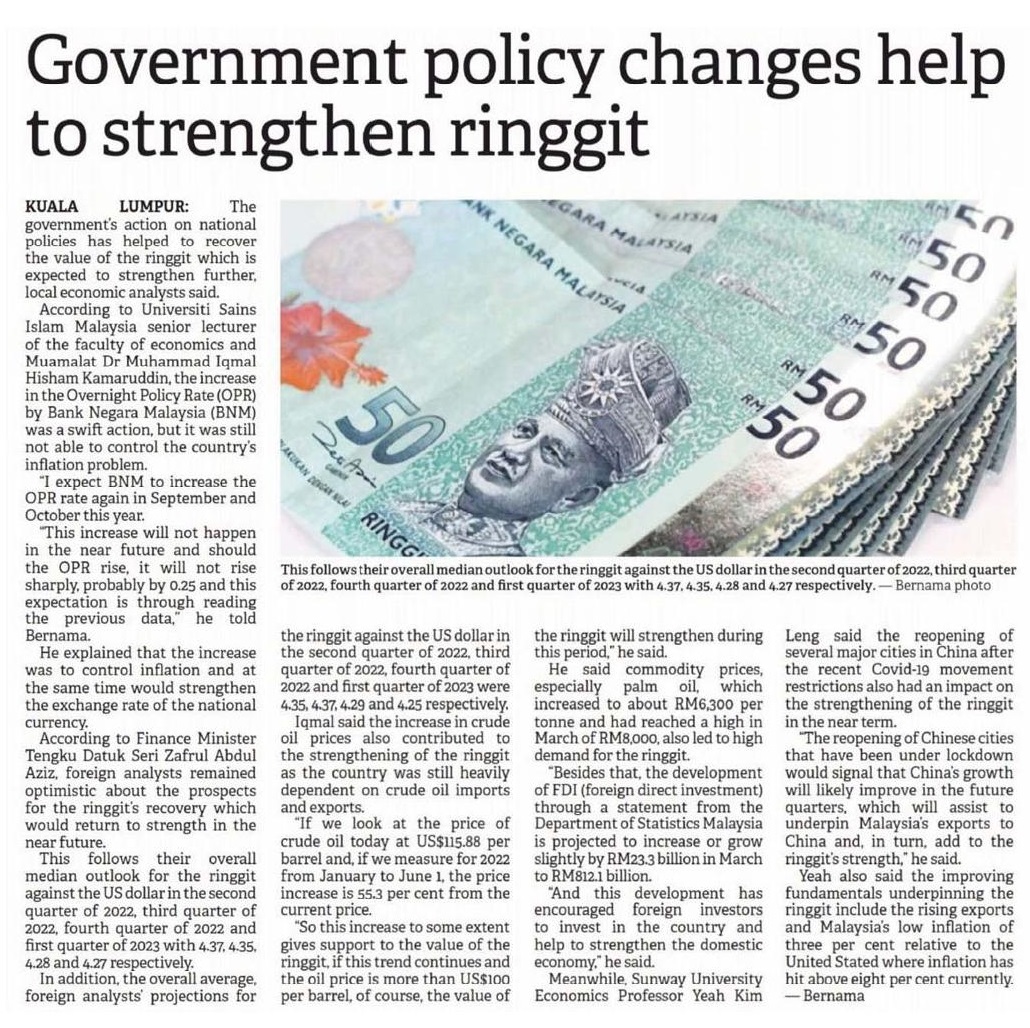 Govenrment Policy Changes Help To Strengthen Ringgit