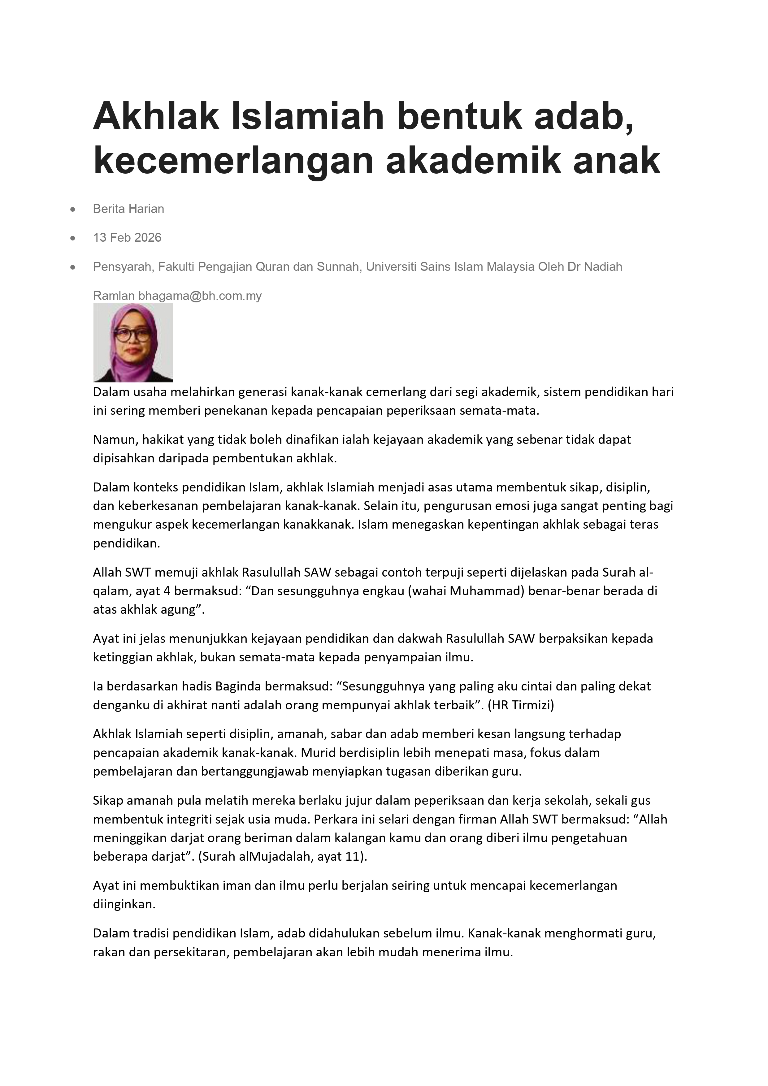Akhlak Islamiah bentuk adab, kecemerlangan akademik anak (Page 1) (1.55 MB)